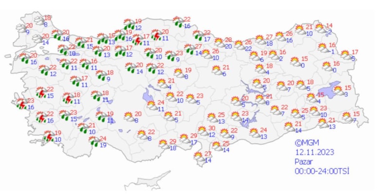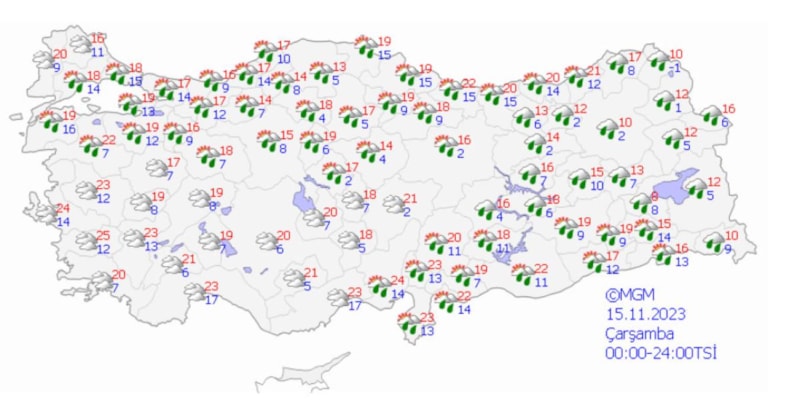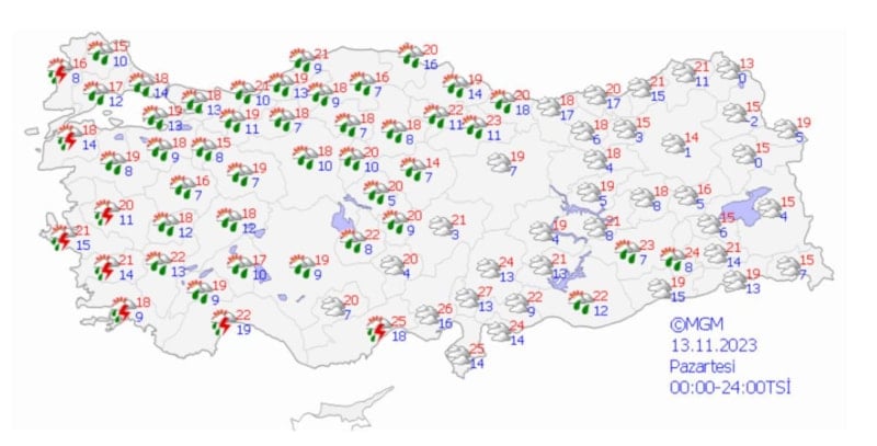 11 ile yağış ve rüzgar uyarısı