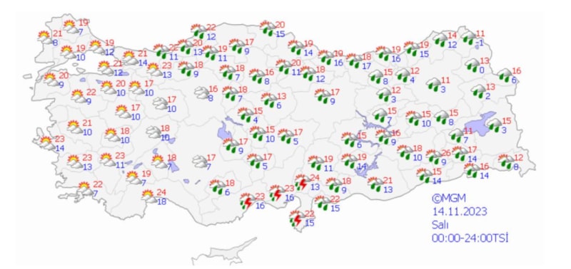 Meteoroloji Genel Müdürlüğü, yurt genelinde havanın bugün güneşli ve sıcak olacağını açıkladı.
