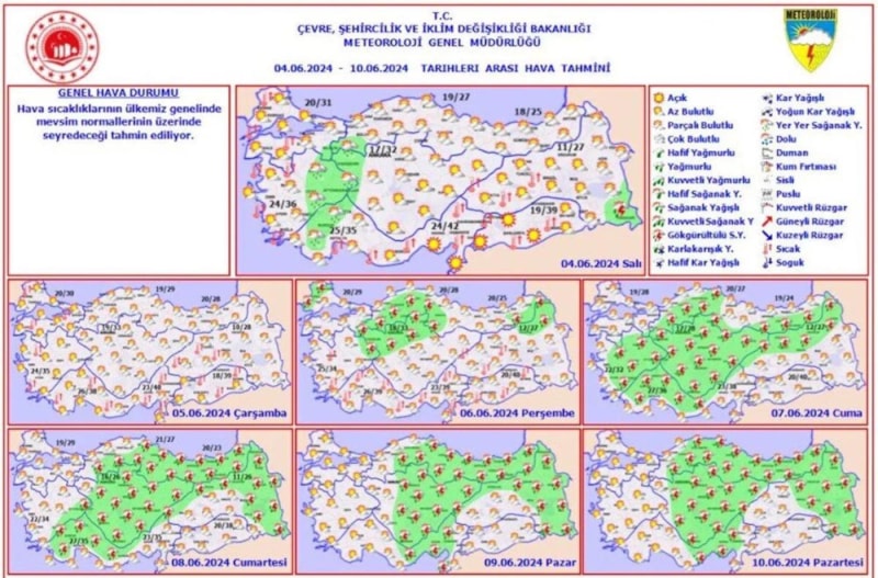 Meteoroloji Genel Müdürlüğü, son hava raporu tahminlerini yayınladı.