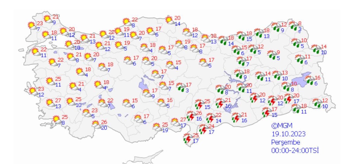 Meteoroloji; Ağrı, Bitlis, Kastamonu, Sakarya, Van, Zonguldak, Bartın, Düzce için sarı uyarıda bulundu.