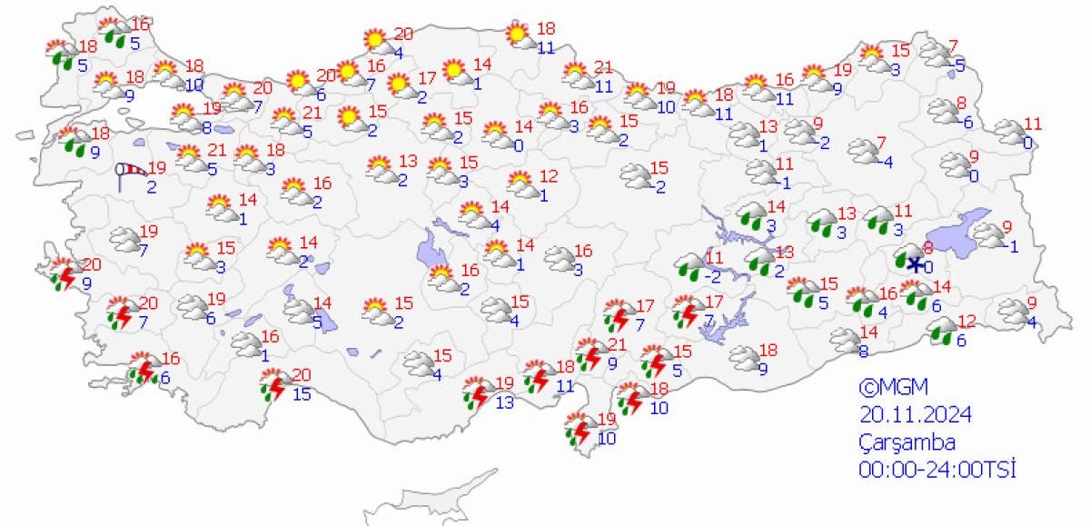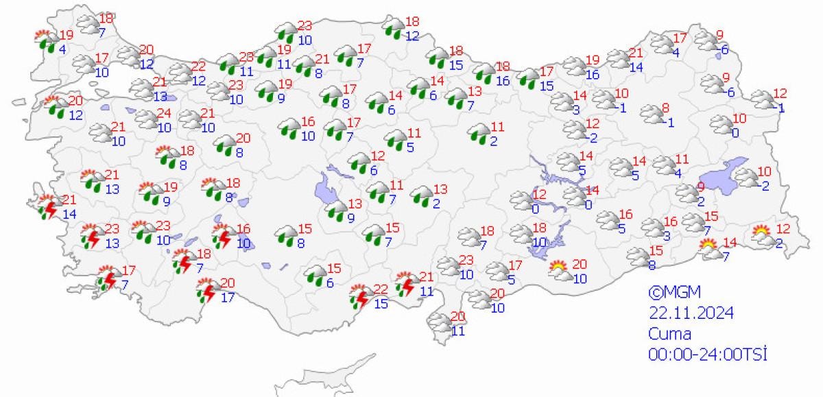 Meteoroloji Genel Müdürlüğünce yapılan tahmine göre; Adana, Hatay, Kahramanmaraş ve Osmaniye'de bugün yerel kuvvetli sağanak ve gök gürültülü sağanak etkili olacak.