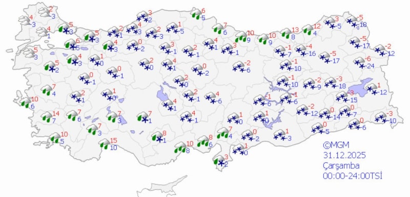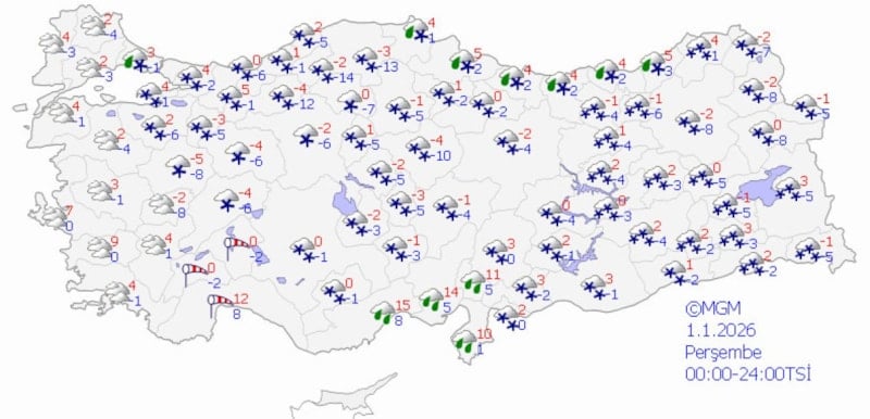 Yağışların, genellikle karla karışık yağmur ve kar, kıyı ve Güney Ege, Akdeniz’in kıyı kesimleri ile Orta ve Doğu Karadeniz kıyılarında sağanak şeklinde olması bekleniyor.