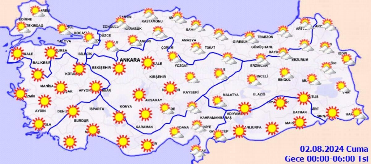 Resmi hesaptan açıklanan haba durumu raporuna göre, yurt genelinde sıcak bir hava hakim olacak.