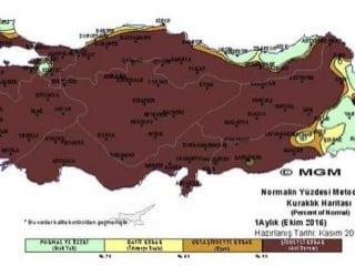Meteoroloji Genel Müdürlüğünün verilerine göre, bu yılın ekim ayı ülkenin büyük bölümünde yağışsız geçti. 2016 yılı ekim yağış ortalaması 20,5 mm olurken, uzun yıllar ortalamasının (49,2 mm) yüzde 58,3 ve geçen yılın aynı dönemine göre ise (83,1 mm) yüzde 75,3 azalma yaşandı.
