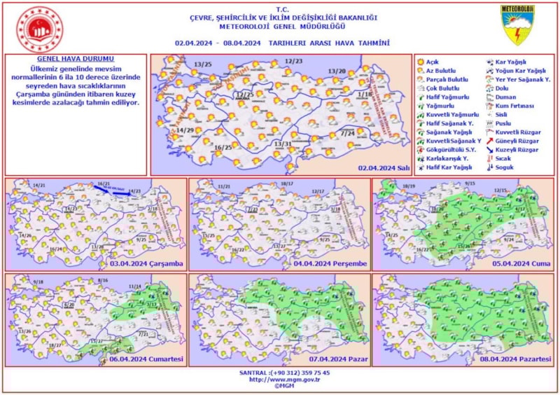 Meteoroloji Genel Müdürlüğü tarafından 2 Nisan hava durumu tahminleri açıklandı.
