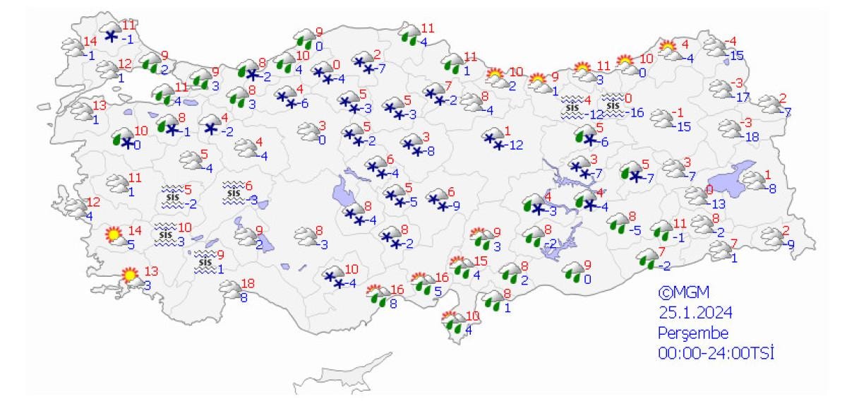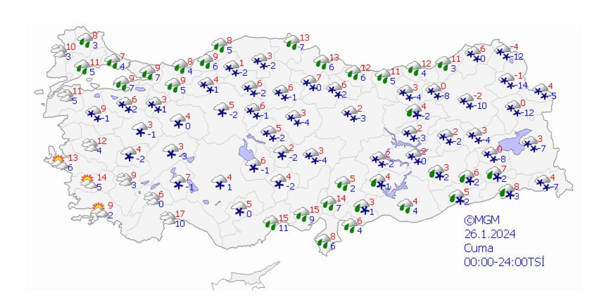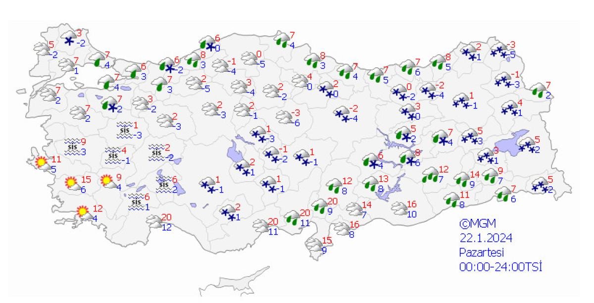 Meteoroloji’nin son değerlendirmelere göre; bu gece saatlerinden sonra Kars, Ardahan ve Ağrı ile kuzey ve doğu ilçeleri başta olmak üzere Erzurum çevreleri ve Muş’un yükseklerinde kuvvetli (10-20 cm), Bitlis, Van’ın kuzey ve güney ilçeleri, Siirt’in yüksekleri, Şırnak’ın doğusunun yüksekleri ile yüksek kesimleri başta olmak üzere Hakkari’de yer yer yoğun (20 cm üzeri) karla karışık yağmur ve kar yağışları beklendiğinden ulaşımda aksamalar, buzlanma ve don, çığ, tipi gibi olumsuzluklara karşı dikkatli ve tedbirli olunması gerekmektedir.