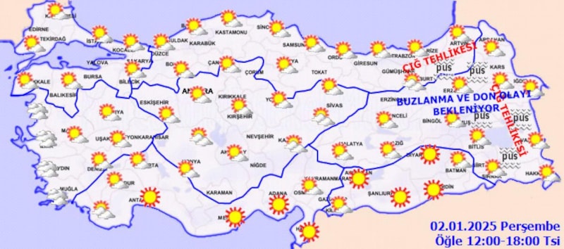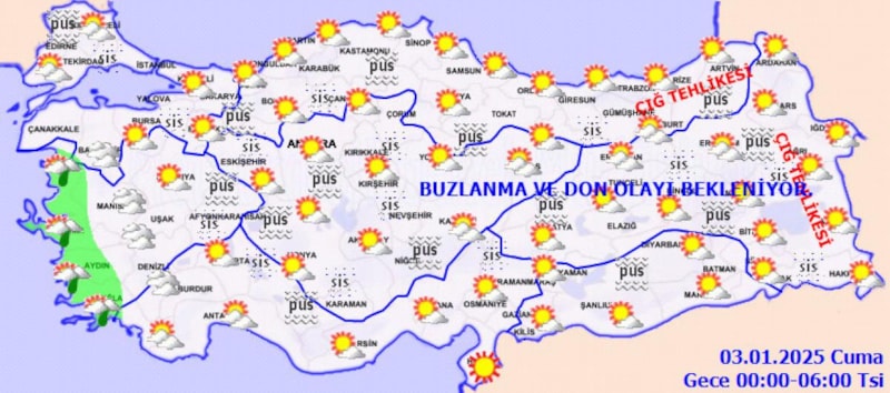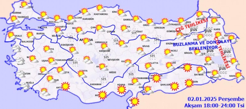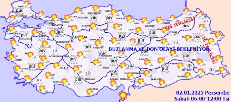 Ülkemizin iç ve doğu kesimlerinde buzlanma ve don ile birlikte pus ve sis bekleniyor.