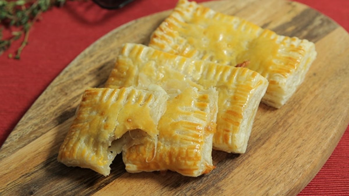 Mantarları doğrayın ve yüksek ateşteki tavada 3-4 dakika soteleyin. Daha sonra tereyağını ve baharatları ilave edip 1-2 dakika daha pişirmeye devam edin ve ocaktan alın. Milföyleri 4 eşit parçaya ayırın ve birer tanelerini taban birer tanelerini kapak olarak ayırın.