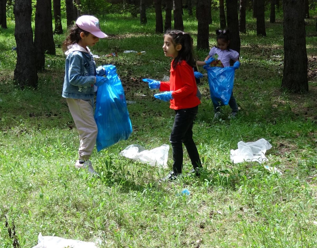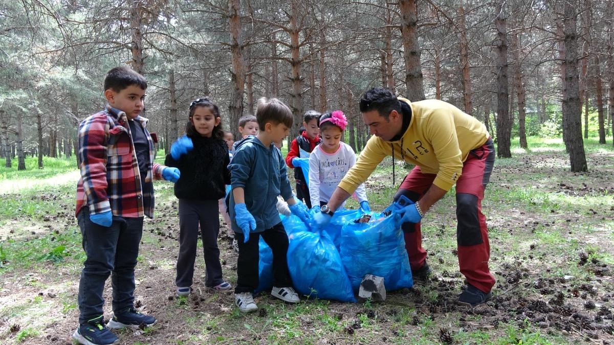 Erzurum’da anaokulu öğrencileri, Atatürk Üniversitesi kampüsündeki ağaçlık alanda çevre temizliği yaptı. Naylon poşetler, sigara paketleri ve içecek kutuları gibi atıkları poşetlere toplayan çocuklardan Ömer Asaf Ay, “Doğayı iyileştirmek için buradayız. İki poşet dolusu çöp topladım” dedi.