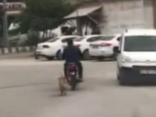 Köpeği motosiklete bağlayıp metrelerce koşturdu İZLE