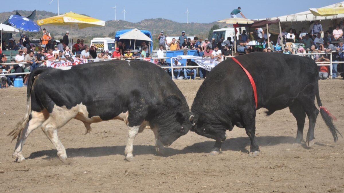 Muğla'nın Datça ilçesi Burgaz mevkindeki alanda düzenlenen 5. Geleneksel Boğa Güreşleri büyük ilgi gördü.