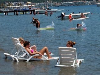 Kuzey Avrupa ülkelerinden gelen turistler şezlongda sere serpe güneşlenerek bronzlaştı. Tatilciler ve vatandaşlar gün boyu çocuklarıyla denizde oyunlar oynayarak serinledi. Otel havuzları ve su parkları plajları aratmayan kalabalıklara sahne oldu. Su parklarında çeşitli büyüklükteki kaydıraklarda ve havuzlarda, turistler hem eğlendi hem serinledi.