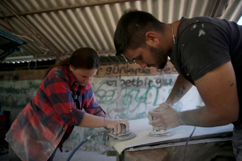 Her gün bir çırak gibi eşinin iş yerine giden Karadere, mesleğin tozunu yuttu ve kaportacılığın inceliklerini öğrendi.