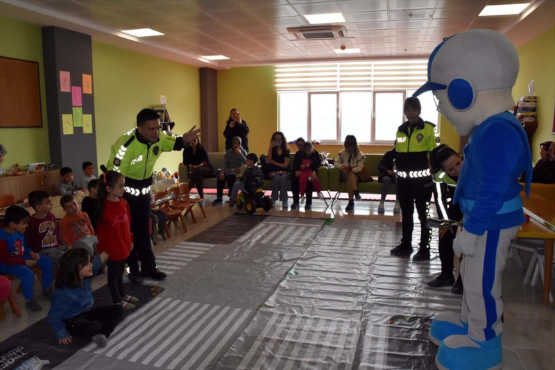 Ekipler, trafikteki temel davranış biçimlerini "Kanka Polis" maskotunun katılımıyla uygulamalı gösterdi.