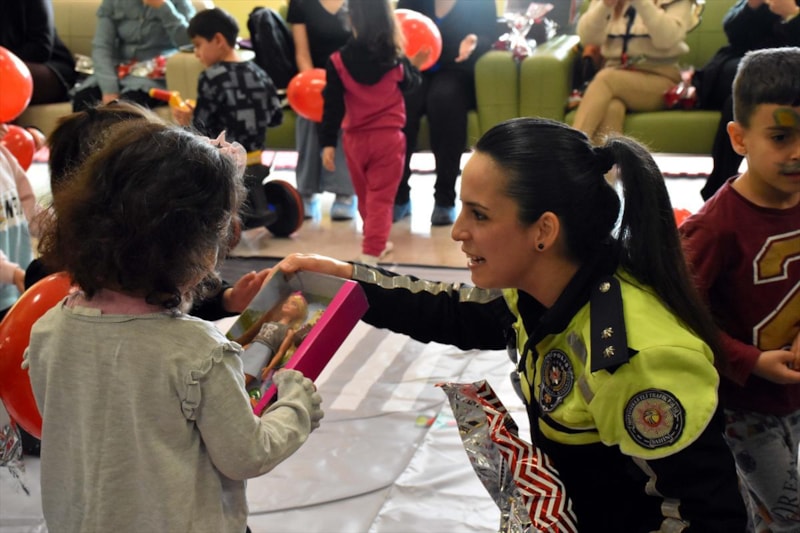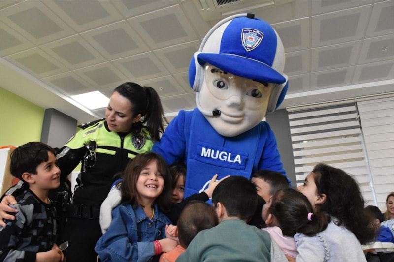 Muğla'da trafik polisleri, depremlerden etkilenen çocuklara yönelik etkinlikler düzenleyerek oyuncak dağıttı.