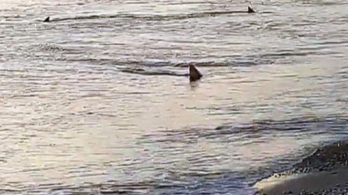 Sahil kesiminde gezintiye çıkan Servet Şimşek, 6 köpek balığını avlanırken cep telefonu kamerası ile saniye saniye görüntüledi. Şimşek, ''Sahilden açık mesafede camgöz ve kum türü köpekbalıkları görüyorduk. Ancak kıyıya bu kadar yakın ilk kez görüyoruz. Büyük bir şaşkınlık içerisindeyim'' dedi.