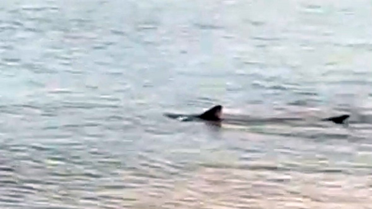 Görüntülerde, suyun hemen altında süzülen iki köpek balığının bir süre bölgede dolaştıktan sonra gözden kaybolduğu görüldü.