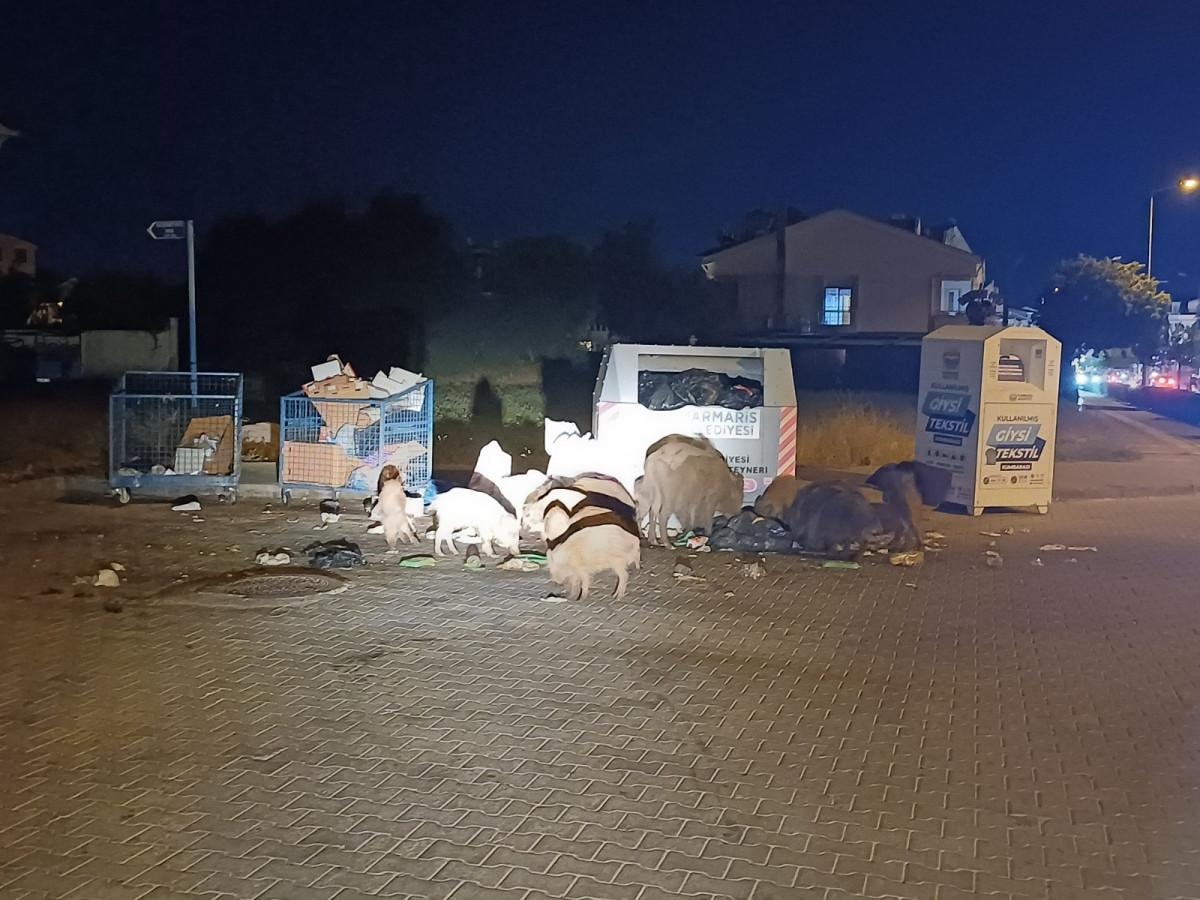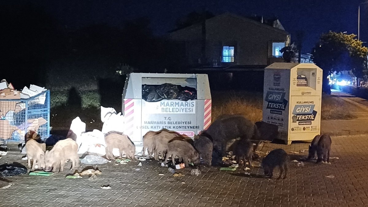 Marmaris Belediyesi'nin temizlemek için çaba göstermediği sokaklardaki çöp dağları, yaban domuzları için yiyecek bulma alanlarına döndü.