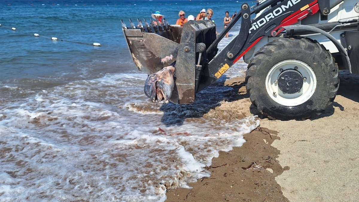 Ardından Bodrum Belediyesi Temizlik İşleri Müdürlüğü ekipleri, ölü yunusu sahilden alarak uygun bir alana gömdü.