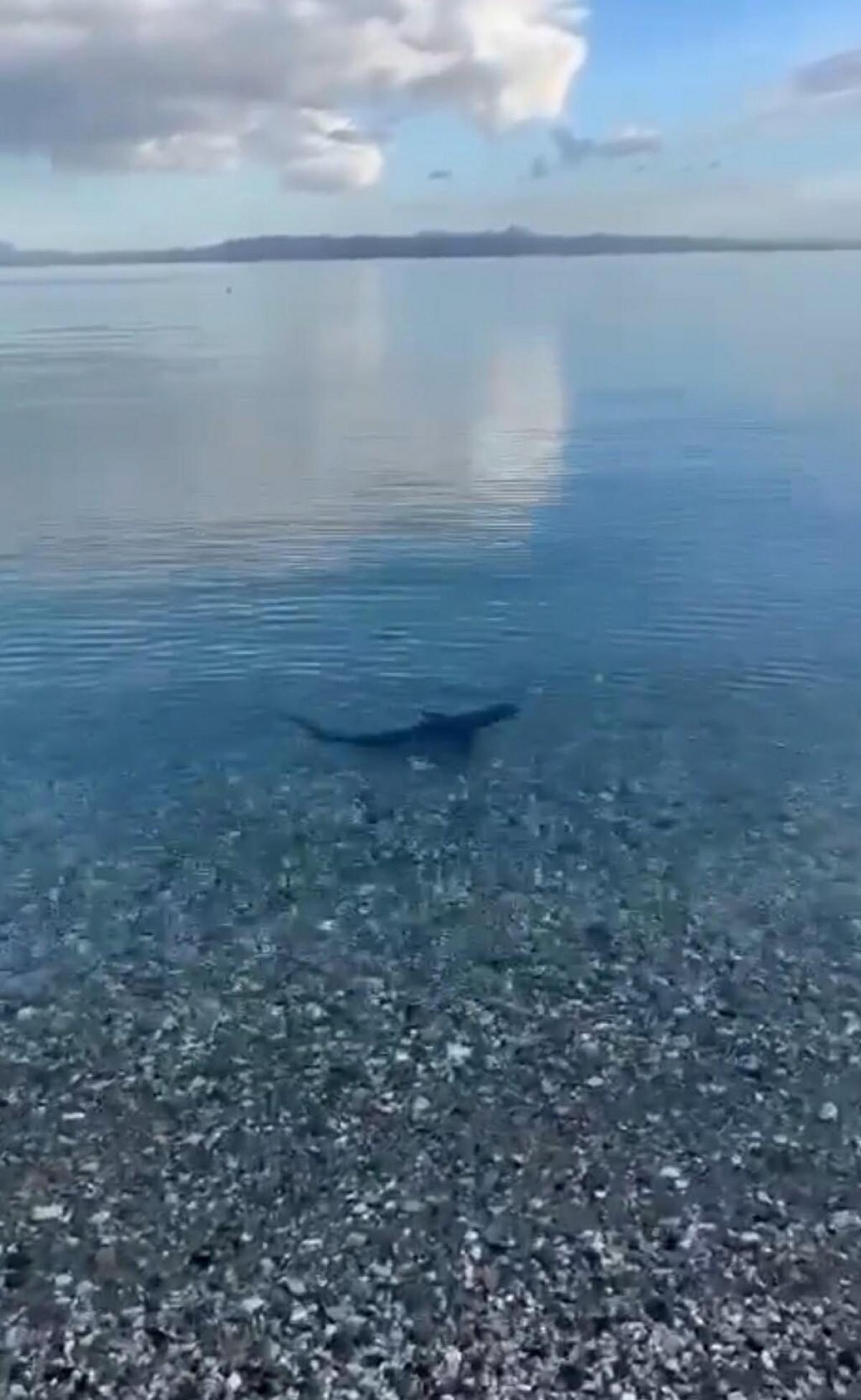 Bölge halkının ilgisini çeken köpek balığını görenler, o anları cep telefonuyla kaydetti. Kıyıda avlandığı görülen köpek balığının, bölgede gezdiği ve daha sonra gözden uzaklaştığı görüldü.
