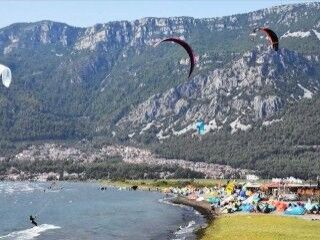 Gökova Körfezi'nde rüzgar ve uçurtma sörfü alanında Avrupa'daki en iyi 8 sahil arasında gösterilen Akçapınar sahili, sporcuların gün boyu yaptığı akrobasi hareketleriyle de ziyaretçilerin ilgisini çekiyor.