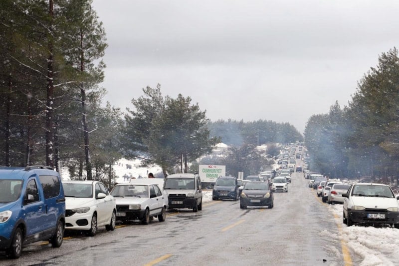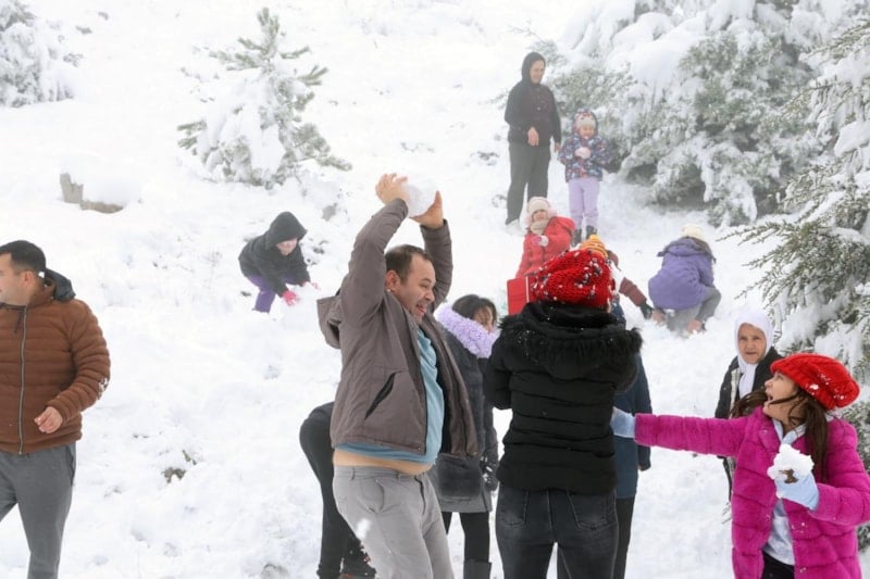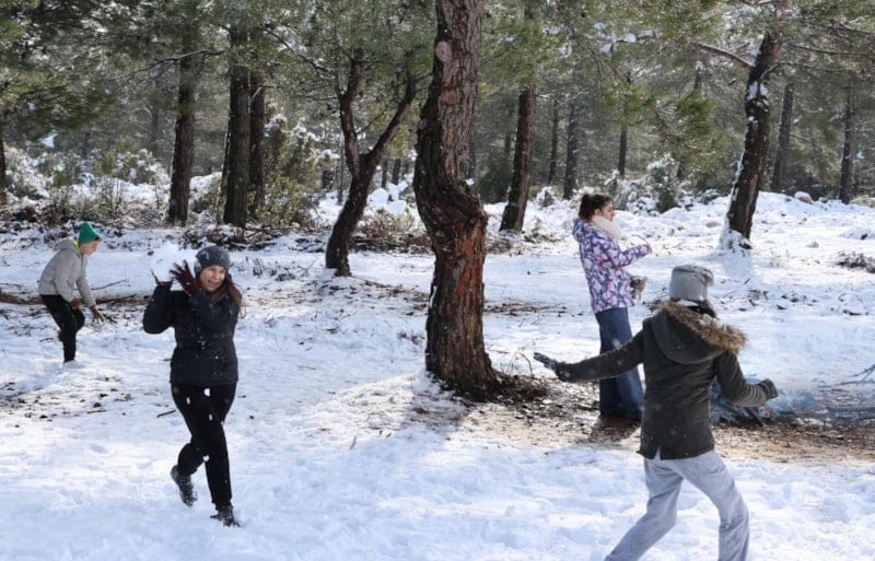 Muğla’nın Menteşe ilçesi dışından Marmaris, Ortaca, Dalaman, Köyceğiz, Ula, Yatağan ve Bodrum ilçelerinden de Yılanlı dağına karda piknik yapmak için araçları ile gelen vatandaşlar, kar üzerinde ateş yakarak hem piknik yaptı, hem de kartopu oynadılar.