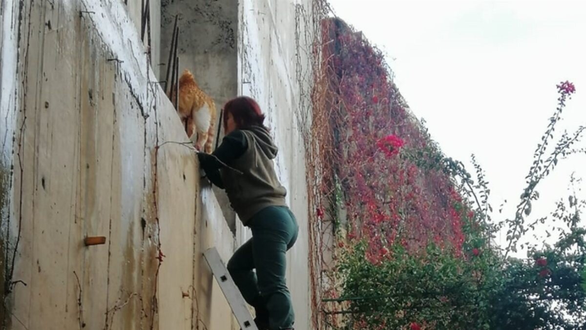 Muğla'nın Bodrum ilçesine bağlı Lapaçavuş Sokak'ta, bir kedinin karın bölgesine istinat duvarının demir çubuğu saplandı.