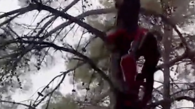 Muğla'nın Fethiye İlçesi'nde ihbara giden ekipler ağaca takılarak mahsur kalan Yabancı uyruklu kazazedeyi kurtararak sağlık ekiplerine teslim etti.