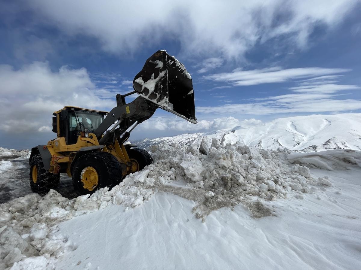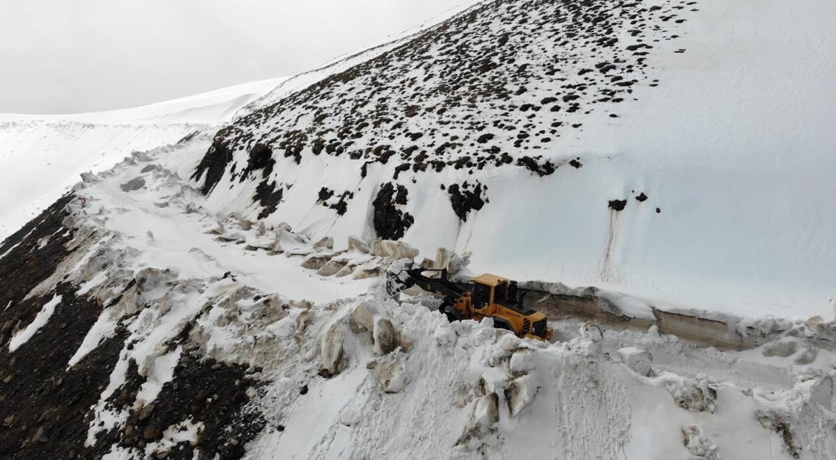 Vatandaşların alternatif olarak kullandığı 22 kilometrelik yolu ulaşıma açmak için 5 metre yüksekliğindeki kar kütlelerini yoldan kaldırmaya çalışan ekipler, Ramazan ayında zorlu bir çalışma yürütüyor.