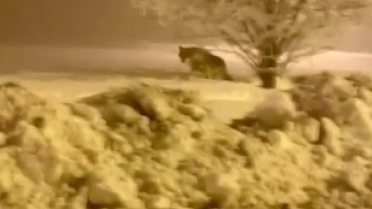 Muş’un Hasköy ilçesinde yoğun kar yağışı sebebiyle aç kalan kurt, ilçe merkezine indi.