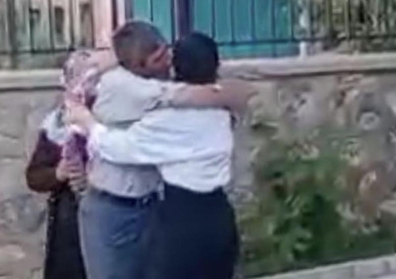 Babasının kendisine uzattığı bir buket çiçeği alarak boynuna sarılan ve öpen Çimen Gülen, ona ve annesine teşekkür etti.