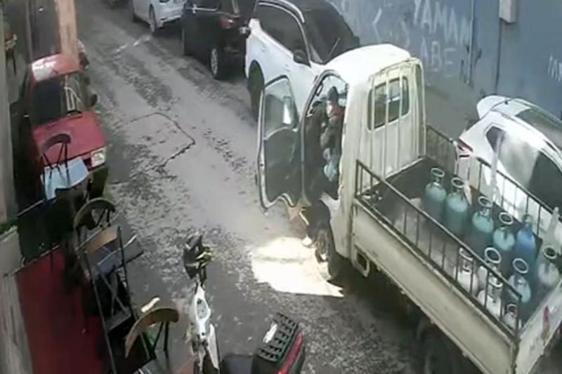 Muş'ta sürücüsünün el frenini çekmeyi unuttuğu öne sürülen, üzerinde 11 büyük boy tüp bulunan kamyonet, kısa süre sonra hareket etti.
