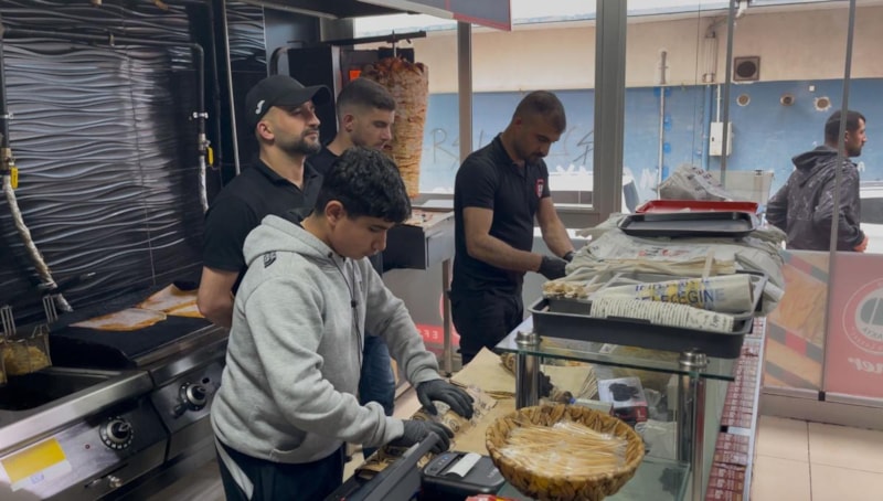 Kent merkezinde, park halindeyken aniden hareket eden kamyoneti, el frenini çekerek durduran 13 yaşındaki çocuk, dönercide çalıştığını belirterek, elindeki işi bırakıp koştuğunu dile getirdi.