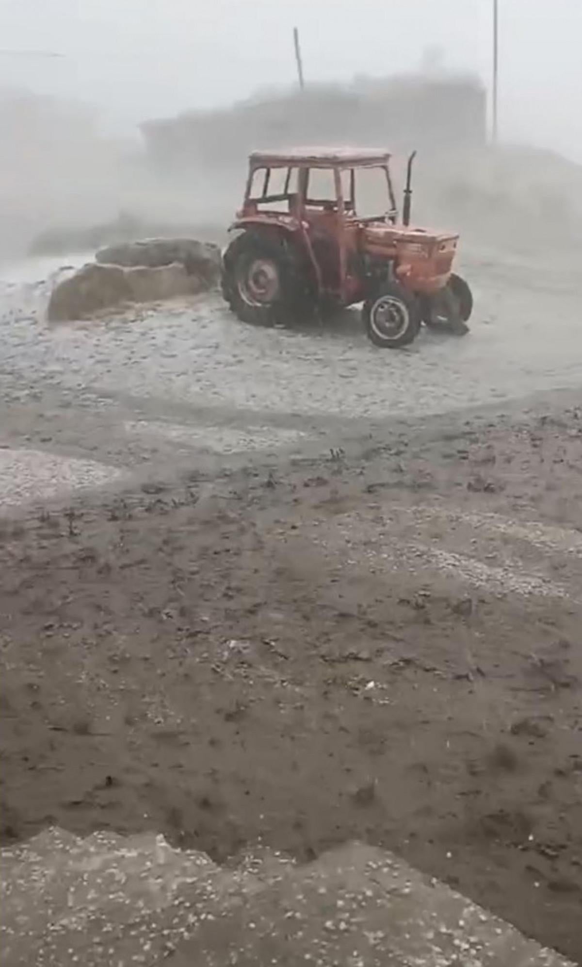 Malazgirt ilçesinde etkili olan dolu yağışı nedeniyle İyi Komşu ve Yolgözler köyleri beyaza büründü.