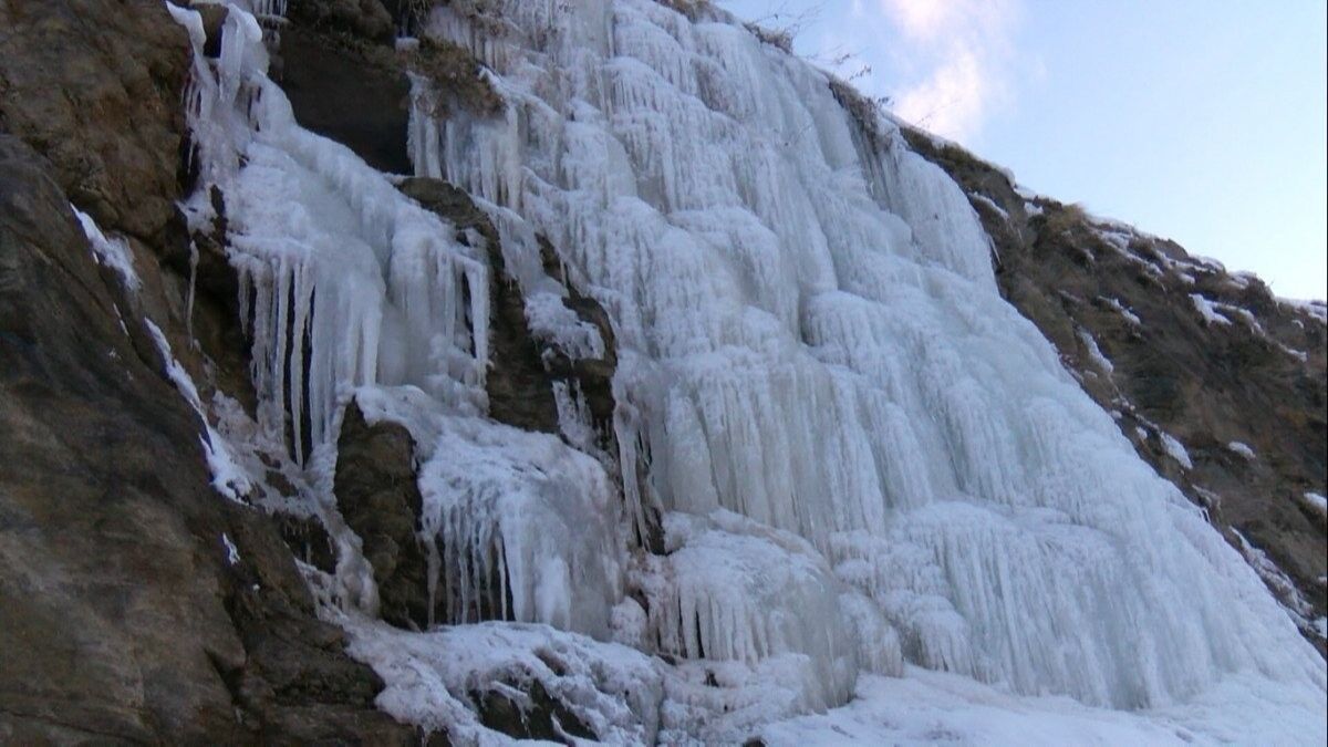 Sıcaklığın sıfırın altında 15 dereceye kadar düşmesiyle Kale Mahallesi'ndeki dere ve şelale dondu.