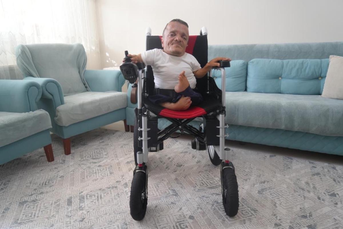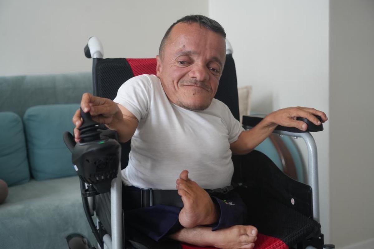 Akülü tekerlekli sandalyesine kavuşan doğuştan engelli Aladdin Diğer, “Tekerlekli akülü sandalyem olmadığı için her yere sürünerek gidiyordum. Allah’tan gelen baş göz üstüne dedik. 44 yıldır sokaklara çıkarak yürüyemiyordum. Gidemediğim sokaklar bana cennet gibi geliyordu.