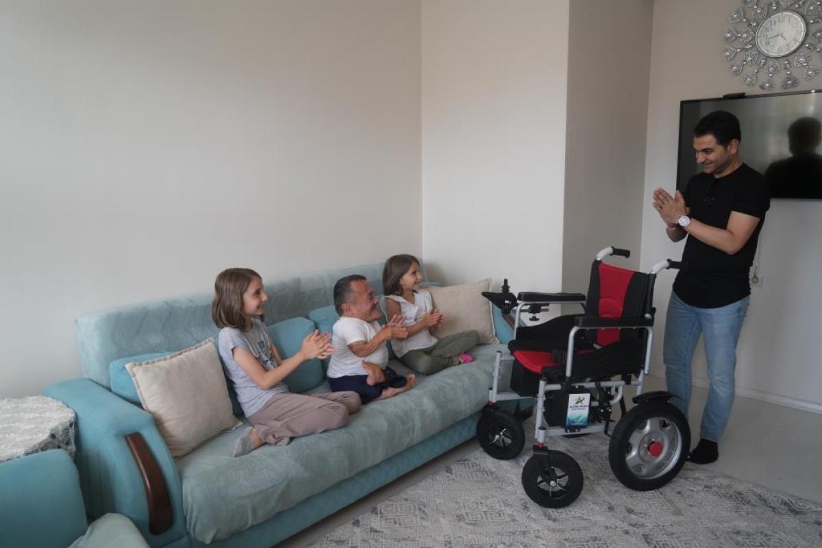 Doğuştan engelli olan Diğer, daha önce sürünerek gezdiği yerleri artık akülü sandalyesi sayesinde tek başına gezecek.