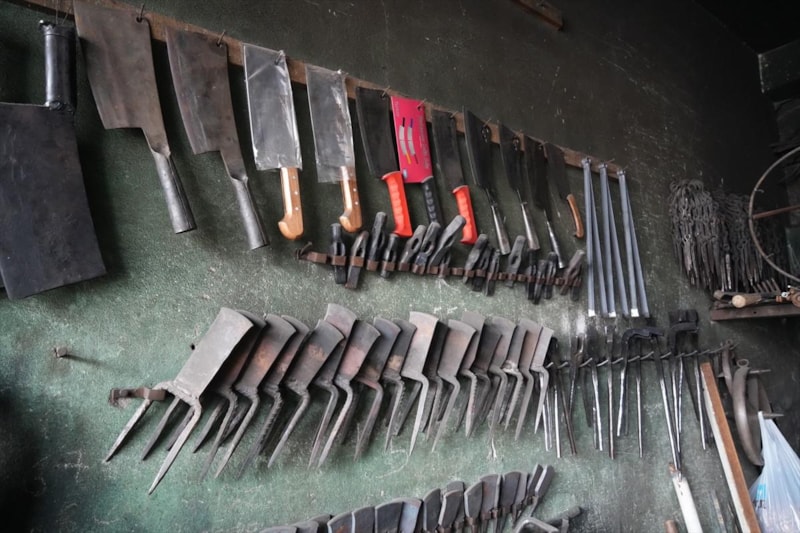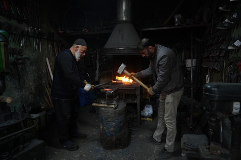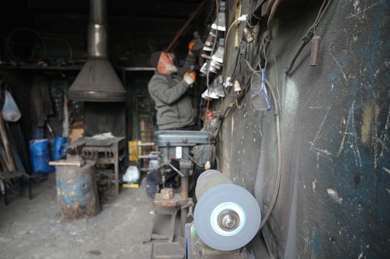 Kale Mahallesi'ndeki Eski Çarşı'da bulunan atölyesinde balta, çekiç, murç, zincir, kapı kolu, kazma ve çapa gibi aletlerin tamirini ve üretimini yapan Pınar, mesleği bugünlere kadar taşıdı.