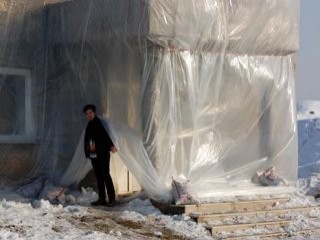 Şiddetli soğuklara karşı önlem için önce internetten araştırma yaptığını söyleyen 45 yaşındaki beş çocuk babası Hüseyin Arme, çözümü ailece oturdukları binayı naylonla kaplamakta buldu.
