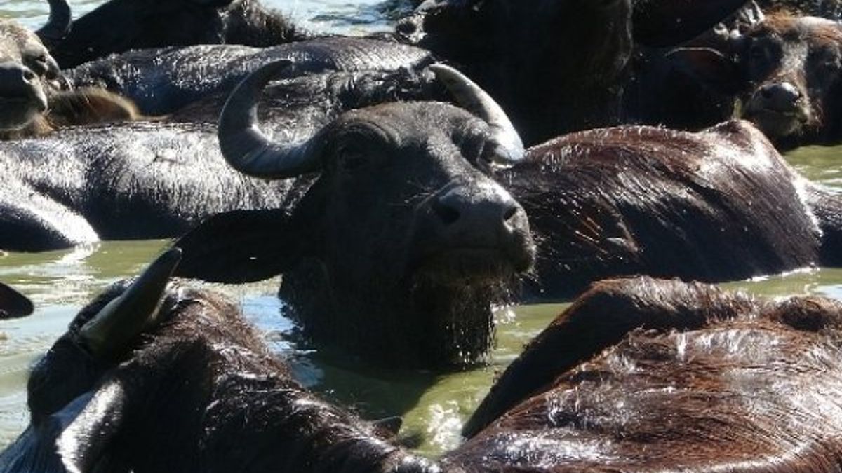 Hasköy ilçesine bağlı Azıklı, Karakütük, Sarıbahçe ve Umurca köylerinde binin üzerinde bulunan mandalar, günün 2-3 saatini Karasu Nehri’ne sokularak geçiriyor.