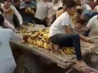 Pakistan'da muz satmak isteyen bir çocuğun, pazarda tüm malı çalındı.