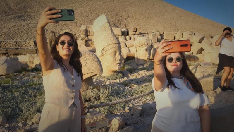 Kartpostallık görüntülerin kaydedildiği Nemrut Dağı zirvesinde turistler, günbatımını cep telefonlarıyla kaydederek, ölümsüzleştirdi.