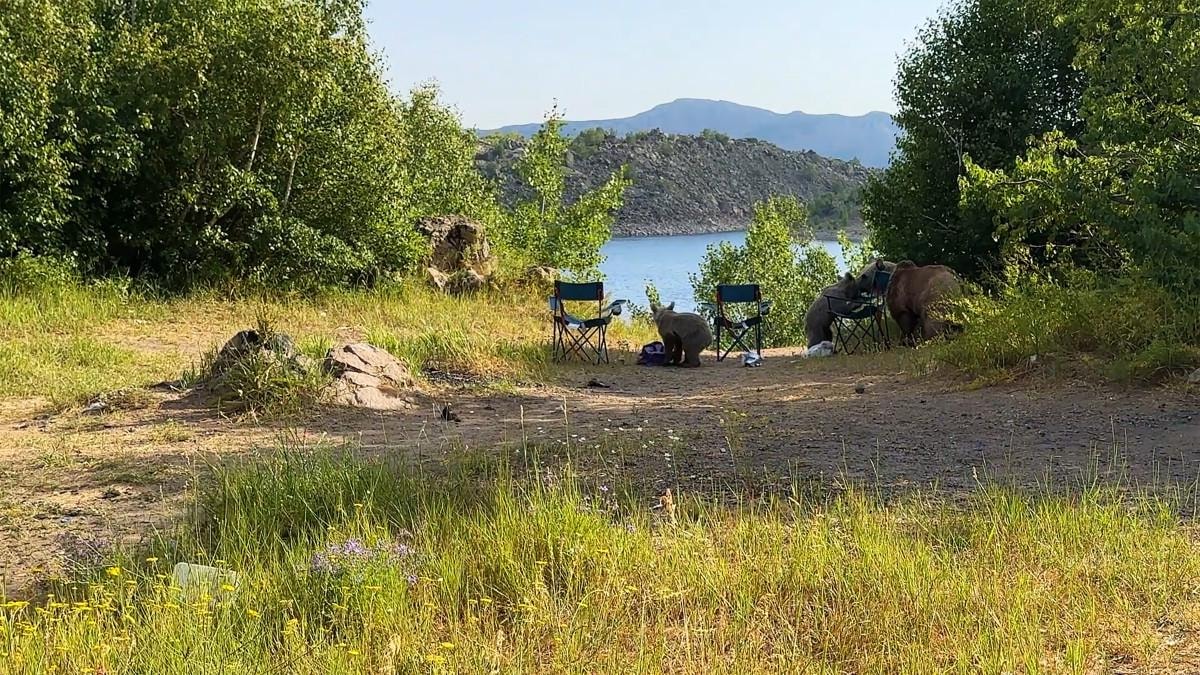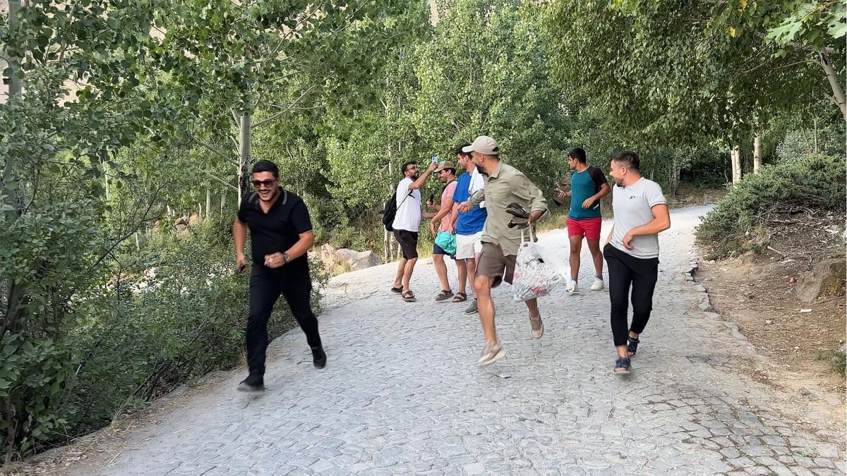 Kalderada doğa yürüyüşü ve piknik yapan vatandaşlar ise bambaşka bir sürprizle karşılaştı. Bir anne ayı ve iki yavrusu, yiyecek arayışıyla piknikçilerin kurduğu sofralara yaklaştı. Masalara kadar gelen ayılar, cep telefonlarıyla görüntülendi. Ziyaretçiler, panik yapmadan sofralarını bırakıp güvenli mesafeden bu anları izledi.