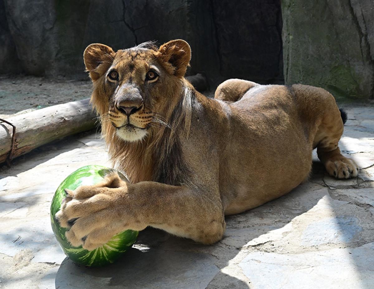 Aslanlar günün yaklaşık 18 saatini uyuyarak geçirirler. Doğada haftada bir besleniyorlar. Biz de iki günde bir besliyoruz. Aslanlar, sabah kalkar, dolaşır, kükrer, sonra uyur. Öğleden sonra kalkar bir tur atar, tekrar uyur. Akşamüstü bir tur daha atar. Zamanlarını çoğunlukla uykuda geçiyorlar. Buraya gelen ziyaretçilerin çoğu 'bunları uyuşturuyor musunuz?' diye soruyor. Öyle bir şey yok. Hayvanların doğası böyle. Etle besliyoruz, tavuk ve kırmız et veriyoruz. Çoğunlukla tavuk eti. Büyük aslanlar bir öğünde yaklaşık 20 kilo et yiyor. Bunun yanında takviyelerimiz, vitaminlerimiz oluyor. 3 ayda antiparazit bir ilaç veriyoruz. Parazit oluşmasın diye. Hayvanat bahçesinde daha çok koruyucu hekimlik var. Çok su içmezler. Günde bir aslan en fazla 5 litre içer. Aslanların sıcak havayla pek bir problemi yok. Geçen hafta aşırı sıcak olduğu gün klimaları açtık. O zaman kapının önünde yattılar, pek içeri girmediler. Akşam kapalı alanlara alıyoruz. Kışın alanları ısıtıyoruz. Doğal yaşamlarında böyle bir imkanları yok. Kışın bazen çok soğuk oluyor. İçeride ısıtıcıları var, sıcak olması için. Kaplanları soğuk pek etkilemez ama aslanların bulunduğu ortamın sıcak olması gerekiyor. Buradaki aslanlar doğadaki aslanlara göre buradaki aslanların yüzde 30 daha uzun yaşayabiliyorlar. 14,15, 16 yıla kadar yaşayan aslanlar var.