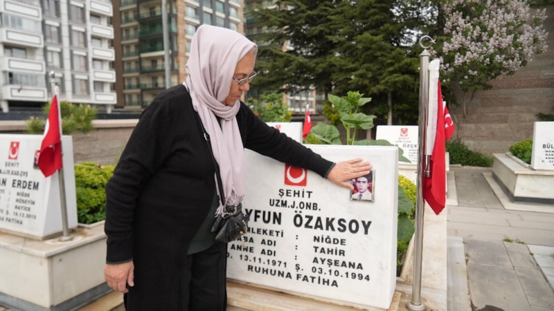 Şehidin annesi Ayşe Özaksoy, Niğde Şehitliği'ndeki sembolik mezarı önceleri kabullenmezken, geçen uzun zamanın ardından artık ümidinin azaldığını söyleyerek sembolik kabrin başında dua ediyor.
