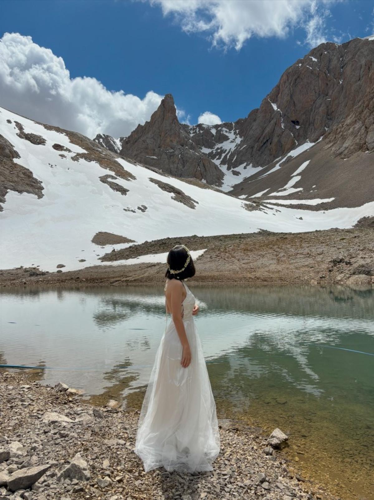 Çift, düğün albümlerini hayat tarzlarına uygun olması için Aladağlar'daki buzul göllere gitti ve çekim yaptı.