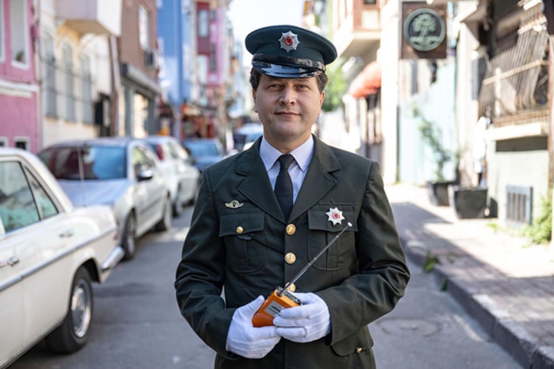 Klasik otomobiliyle nostalji rüzgarı estiren İbrahim Varol, 1970’lerin trafik polislerini andıran üniformasıyla etkinliklerde boy gösteriyor; dönemin ruhunu yaşatırken, sembolik cezalarıyla da yüzlerde tebessüm bırakıyor.