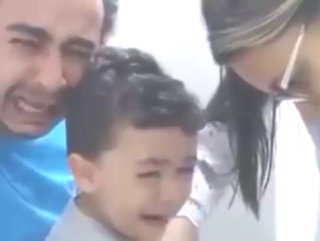 Oğlunu sakinleştirmeye çalışan baba, başarısız olunca kendisi de oğluyla birlikte ağladı.