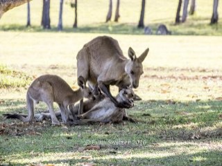 20 yıldır Queensland eyaletindeki kanguruları görüntüleyen fotoğrafçı Evan Switzer, "Hayatımda ilk kez böyle bir ana tanıklık ettim. Erkek kangurunun yavrusuyla birlikte ölen dişi kanguruyu kaldırmaya çalıştığını gördüm. Eşini kaybetmenin acısını yaşayan bir kanguruyu görmek, benim için inanılmaz bir andı" dedi.