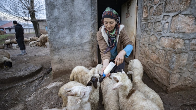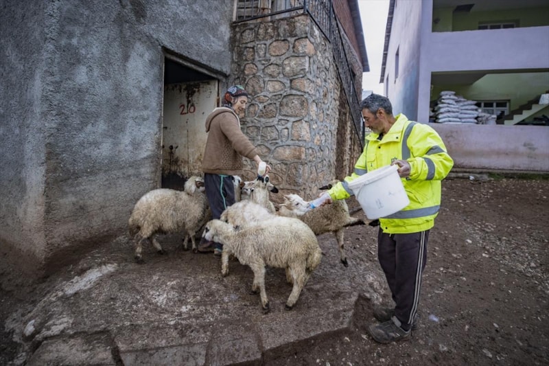 Köylüler, yeterli kadar beslenemeyen bazı oğlak ve kuzuları da biberonla beslemeye çalışıyor.